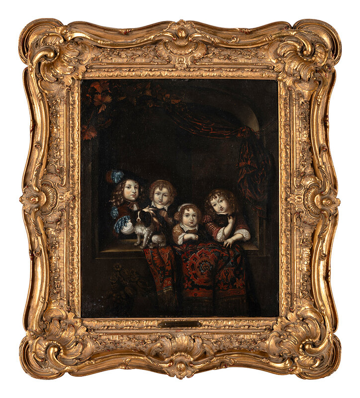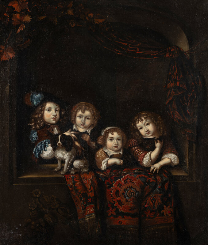 Four Children and Their Pets at a Window