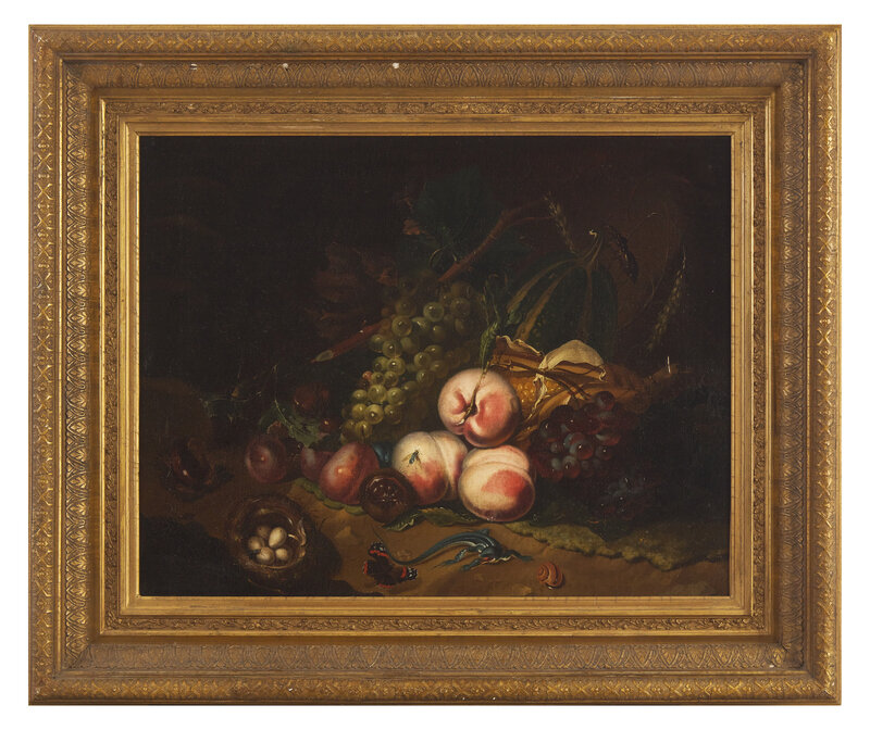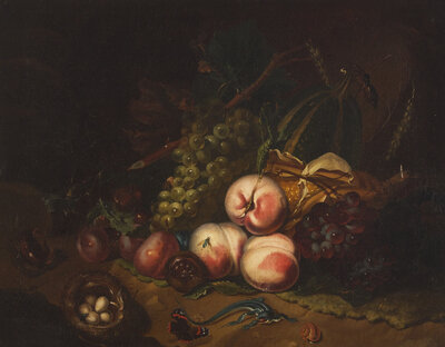 Still Life with Peaches, Grapes and Basket with Eggs