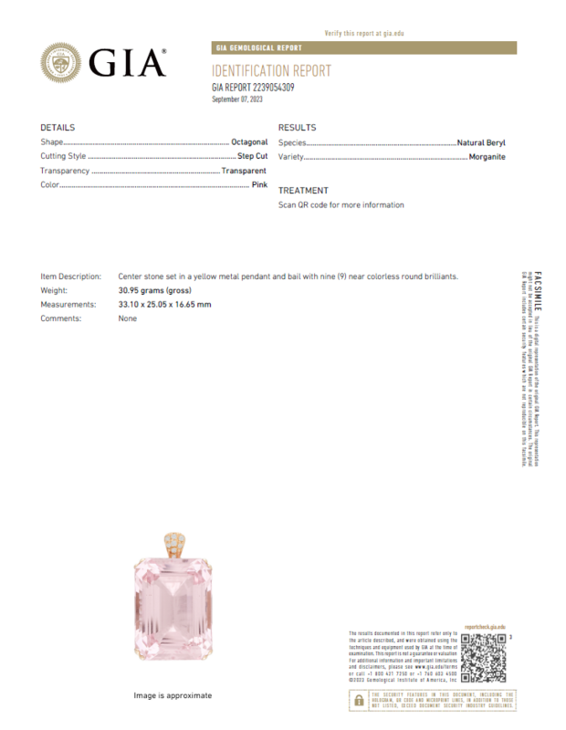GIA, 2023, Report No. 2239054309, Natural Beryl, Morganite