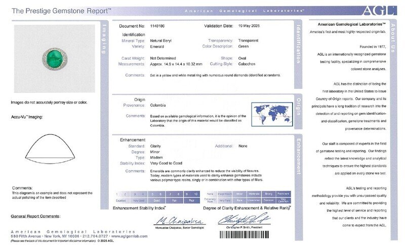 AGL, 2025, Report No. 1148186, Natural Beryl, Emerald, Colombia, Minor Modern clarity enhancement