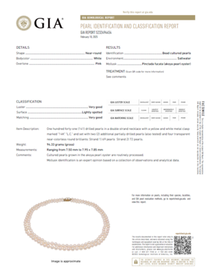 GIA, 2025, Report No. 5232494454, Bead cultured pearls, Saltwater, Pinctada fucata (akoya pearl oyster)