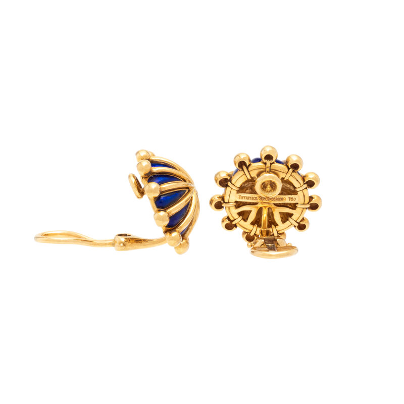 TIFFANY & CO., SCHLUMBERGER, YELLOW GOLD AND BLUE ENAMEL EARRINGS