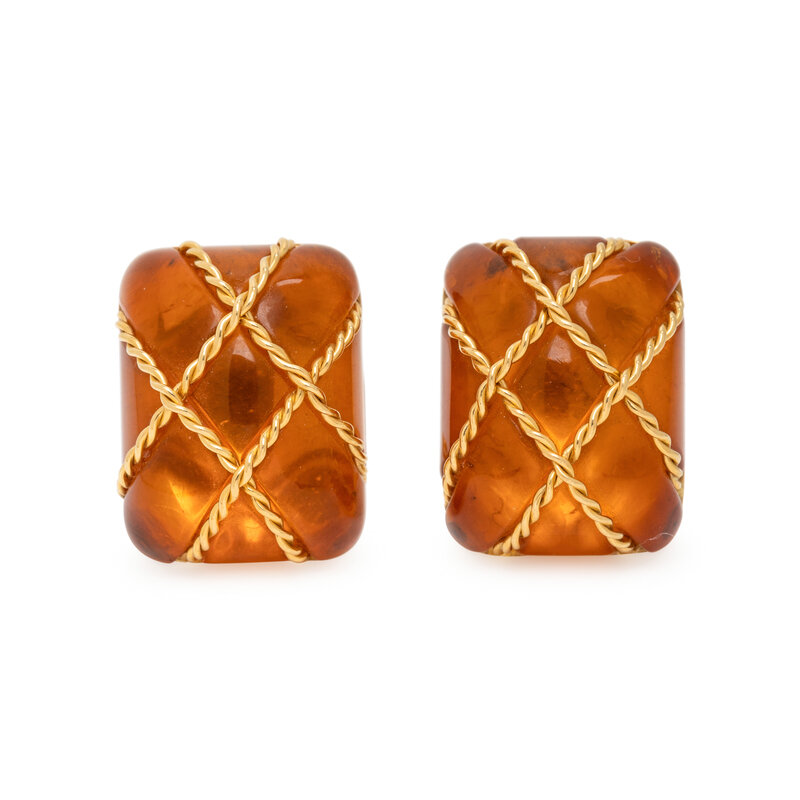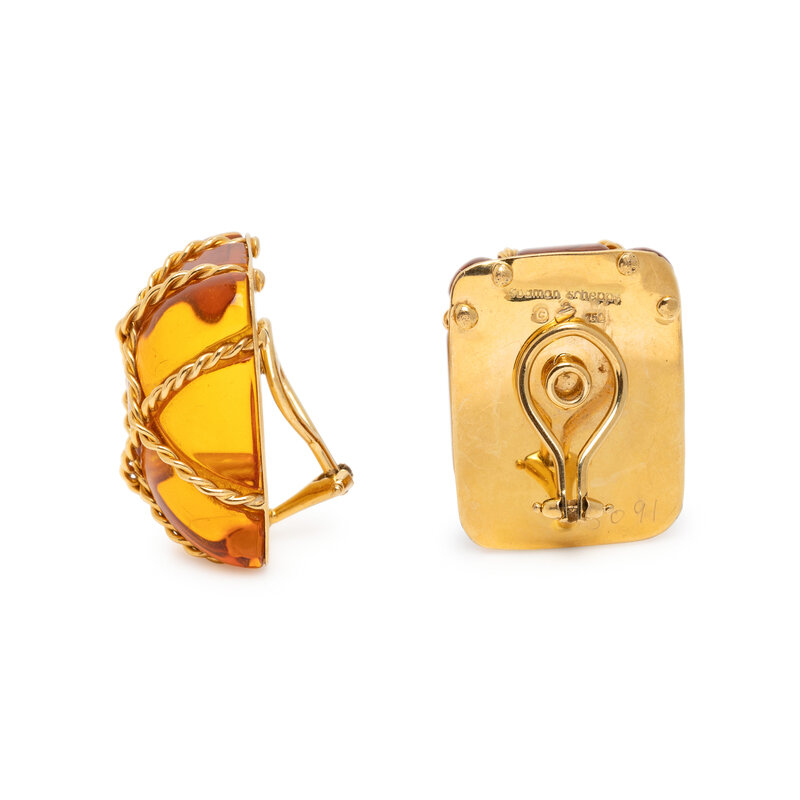 SEAMAN SCHEPPS, AMBER AND YELLOW GOLD 'CAGE' EARRINGS