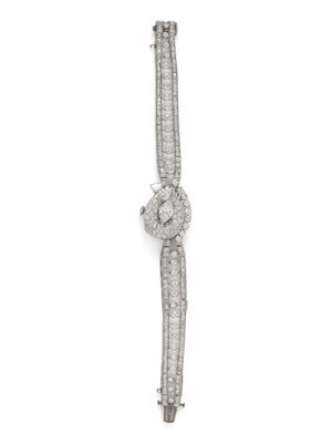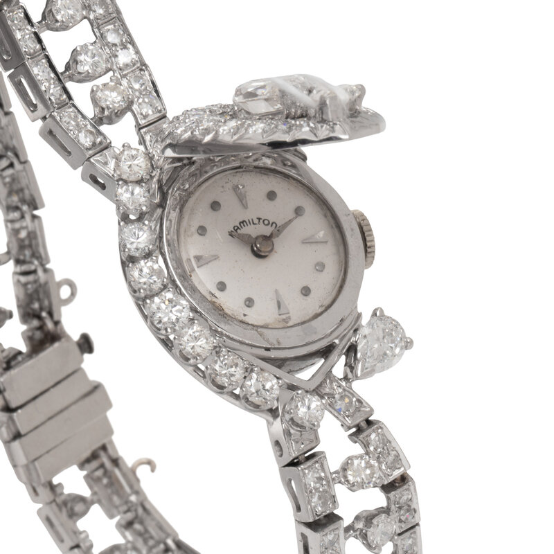 HAMILTON, PLATINUM AND DIAMOND SURPRISE WATCH