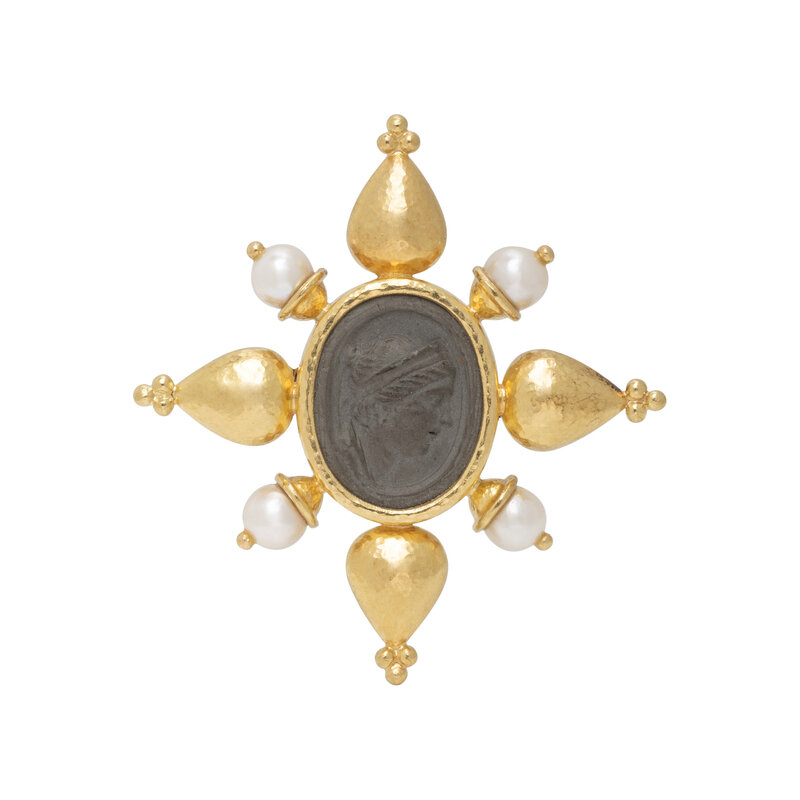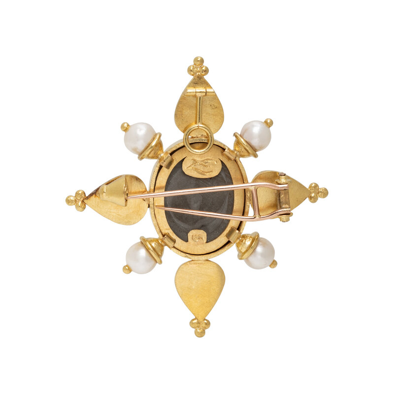 ELIZABETH LOCKE, LAVA CAMEO AND CULTURED PEARL BROOCH PENDANT