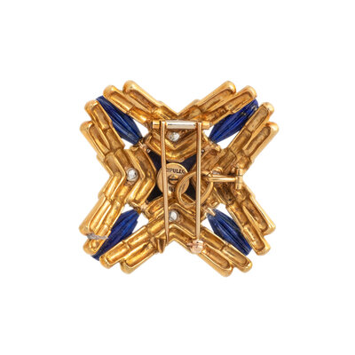 ALDO CIPULLO, YELLOW GOLD, LAPIS LAZULI, AND DIAMOND BROOCH