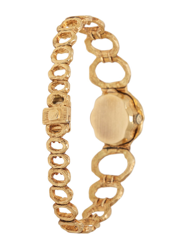 Bracelet/Strap: Integrated 18K yellow gold fancy link bracelet