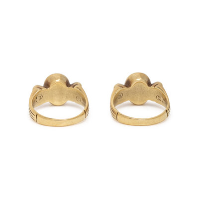 VAHE NALTCHAYAN, PAIR OF YELLOW GOLD AND HARDSTONE INTAGLIO RINGS