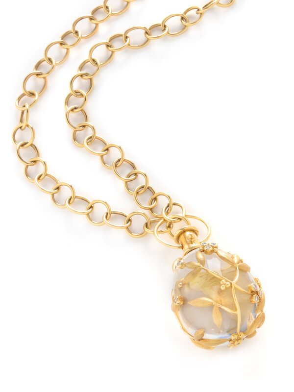 TEMPLE ST. CLAIR, YELLOW GOLD, ROCK CRYSTAL, AND DIAMOND 'LARGE VINE AMULET' AND 'ARNO' CHAIN