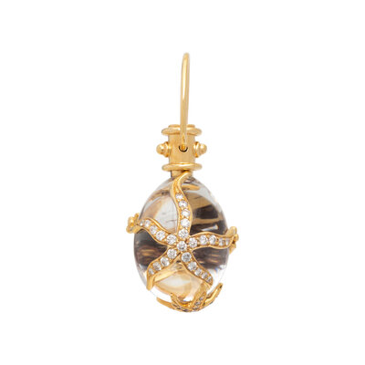 TEMPLE ST. CLAIR, YELLOW GOLD AND ROCK CRYSTAL 'MEDIUM DIAMOND SEA STAR AMULET' PENDANT
