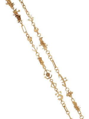 Consisting of varying polished and textured fancy links in 18 karat yellow gold. 56 inches long.