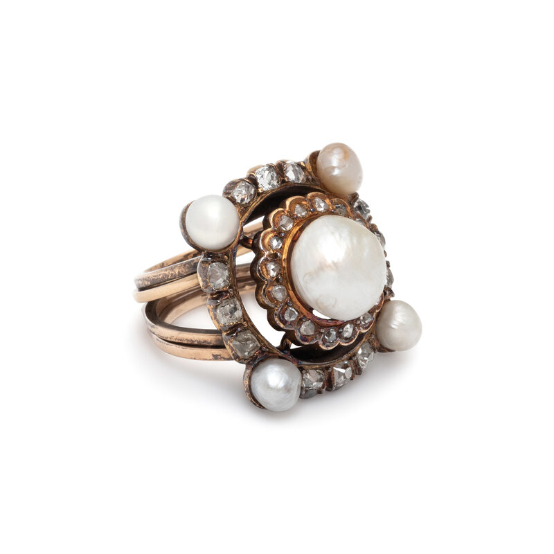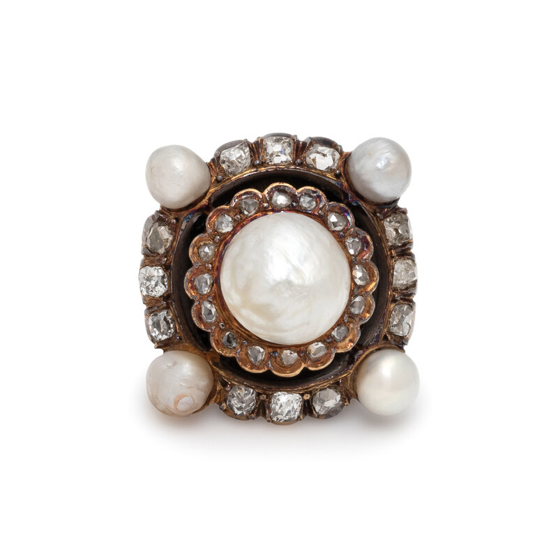 ANTIQUE, NATURAL PEARL AND DIAMOND RING