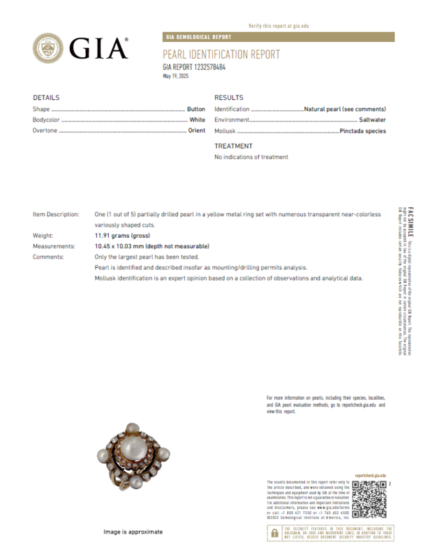GIA, 2025, Report No. 1232578484, Natural Pearl, Saltwater, Pinctada species, No indications of treatment