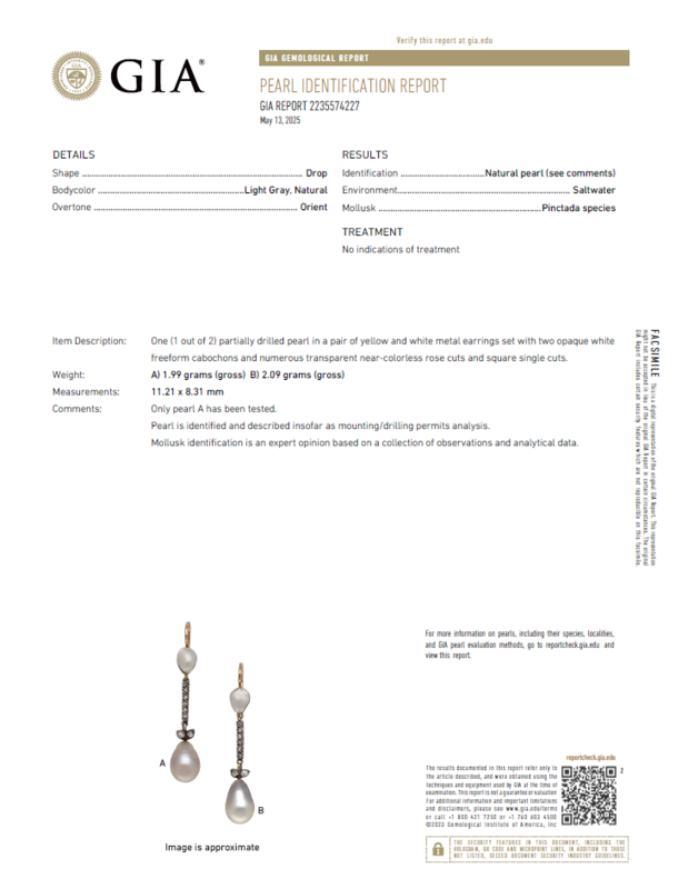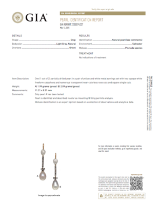 GIA, 2025, Report No. 2235574227, Natural Pearl, Saltwater, Pinctada species, No indications of treatment