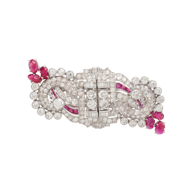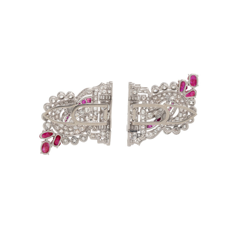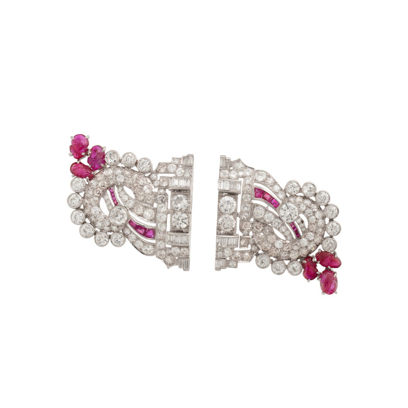 ART DECO, DIAMOND AND RUBY DRESS CLIPS