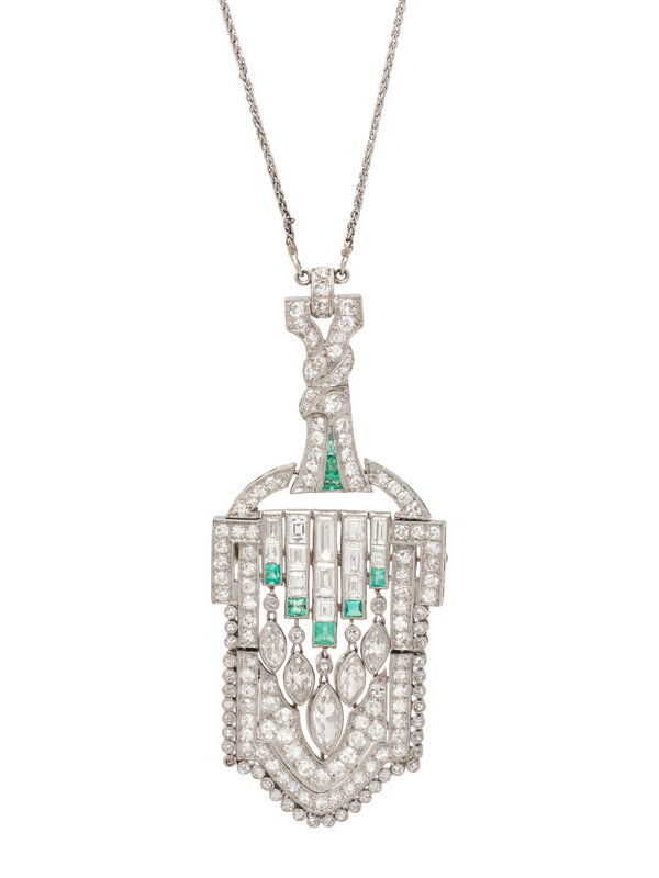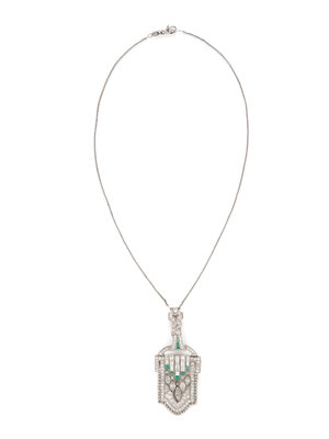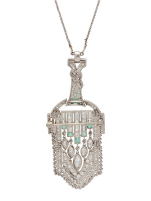 ART DECO, DIAMOND AND EMERALD PENDANT NECKLACE