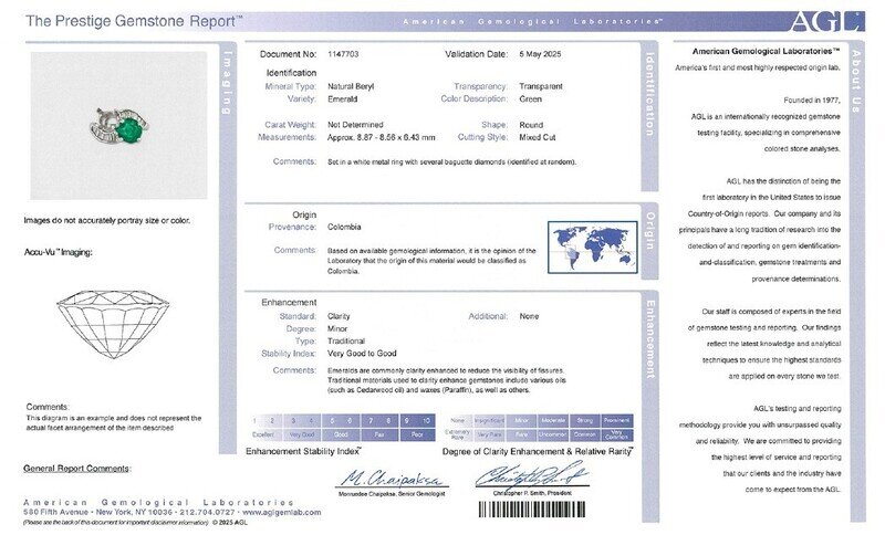 AGL, 2025, Report No. 1147703, Natural Beryl, Emerald, Colombia, Minor Traditional clarity enhancement
