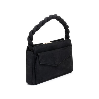A silver gilt and rose gold minaudière set with round cabochon rubies on the exterior, the interior containing three compartments for powder, two mirrors, and a lipstick holder. Minaudière: 5 1/8 x 3 5/16 x 3/4 inches. Silk purse: 7 3/8 x 1 1/8 x 8 inches.