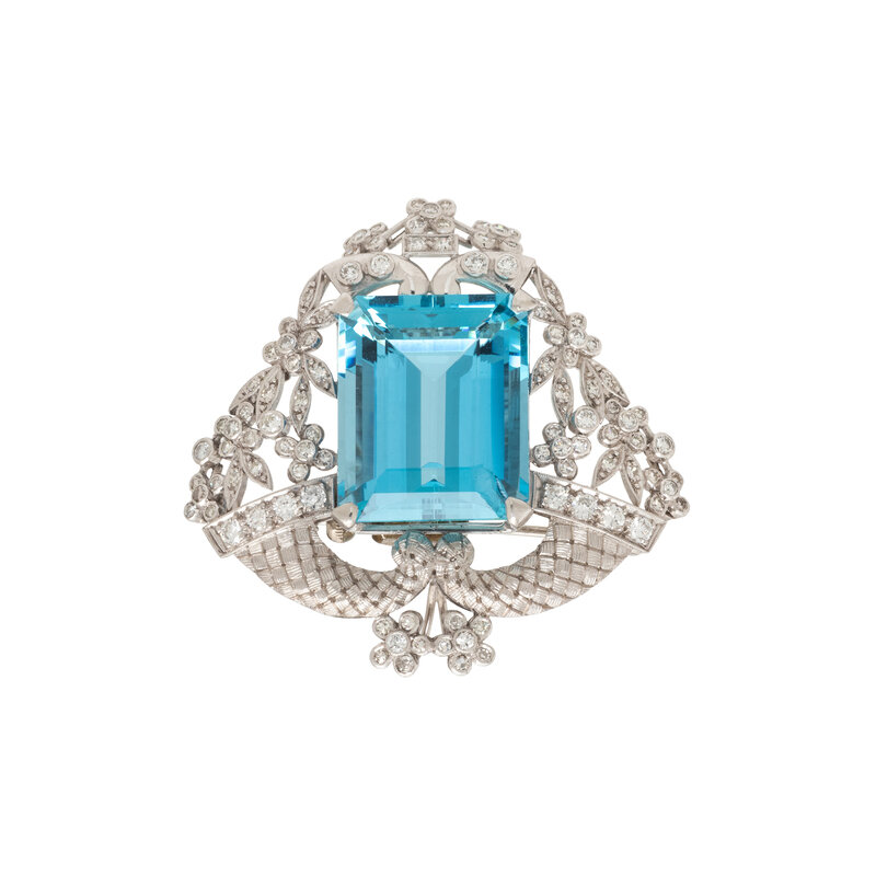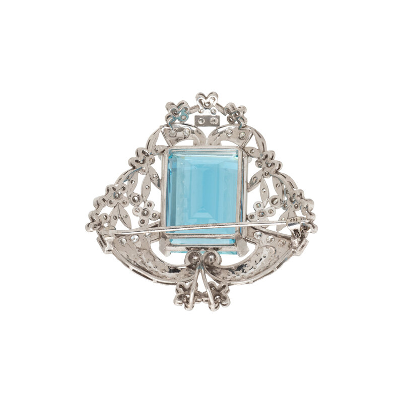 AQUAMARINE AND DIAMOND BROOCH