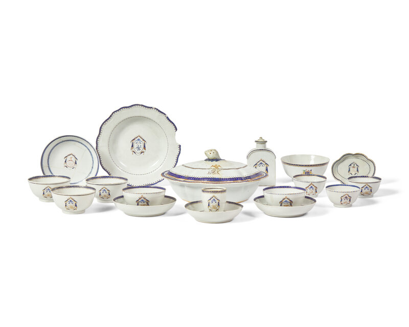 An Assembled Group of Eighteen Chinese Export Porcelain Armorial Tablewares