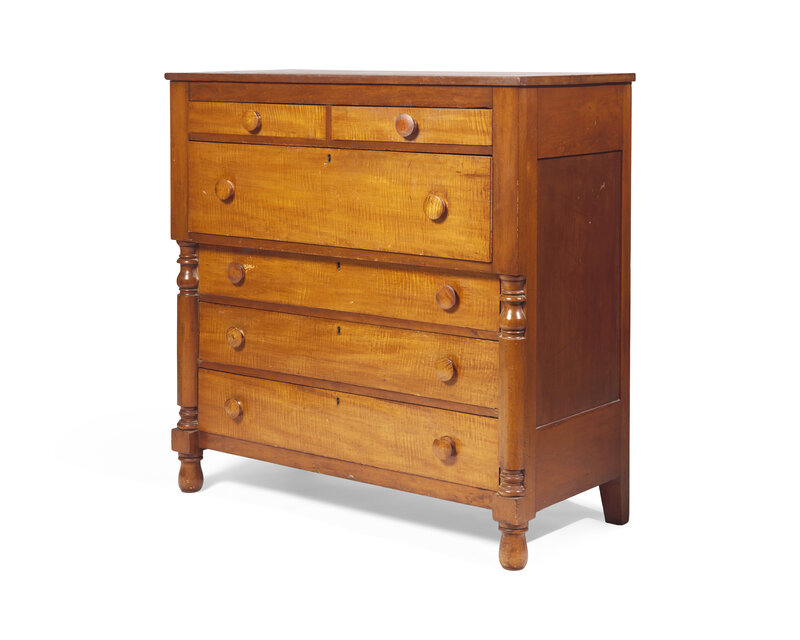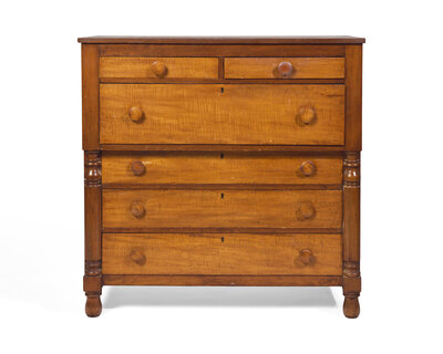 A Late Federal or Classical Cherry and Figured Maple Chest of Drawers