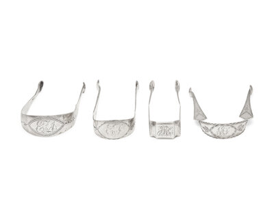 A Group of Four Federal Bright-Cut Silver Sugar Tongs