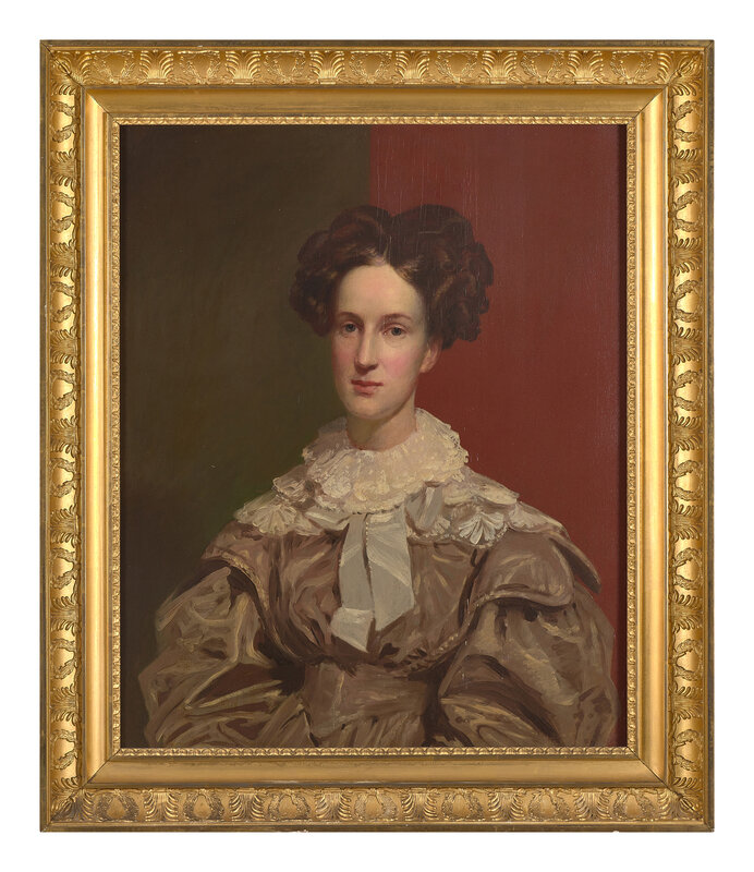 oil on panel, framed, verso bearing notes with sitter identification and family information.