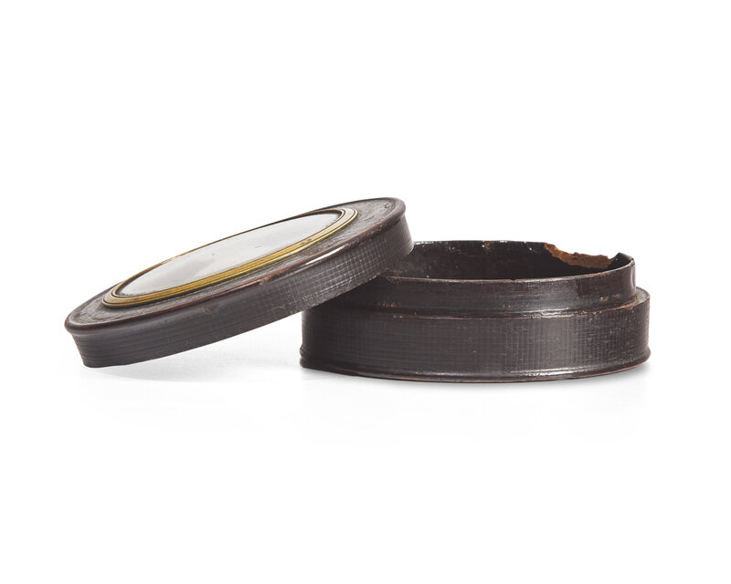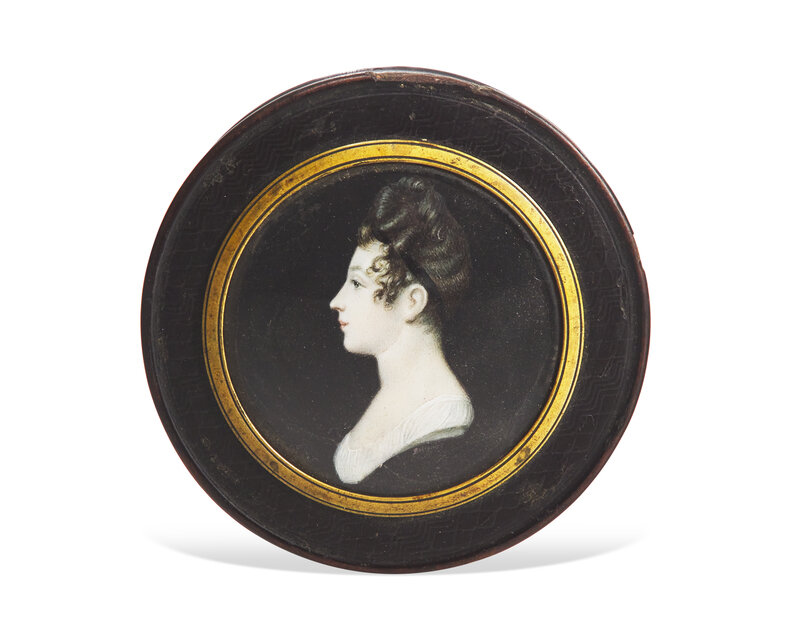 Charles Guillaume Alexander Bourgeois (French, 1758-1832), A Papier-mâché Snuff Box Inset with Profile Portrait Miniature of a Young Lady