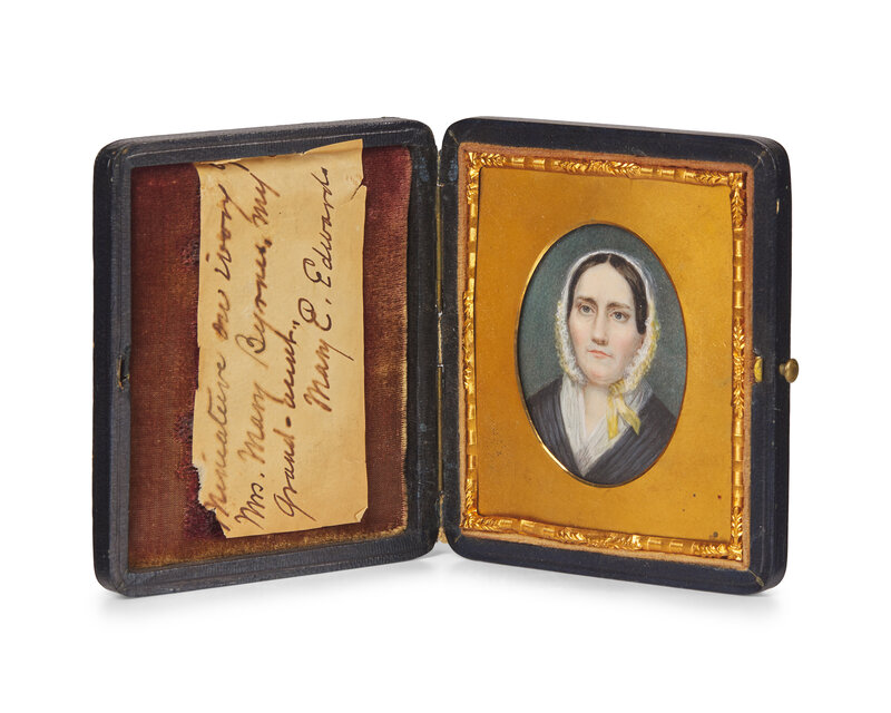 watercolor, housed in leather traveling case with gilt mounts, with paper label inscribed, "Mrs. Mary Byrnes, my Grand-Aunt, Mary E. Edward."