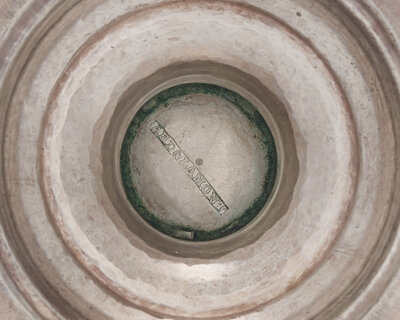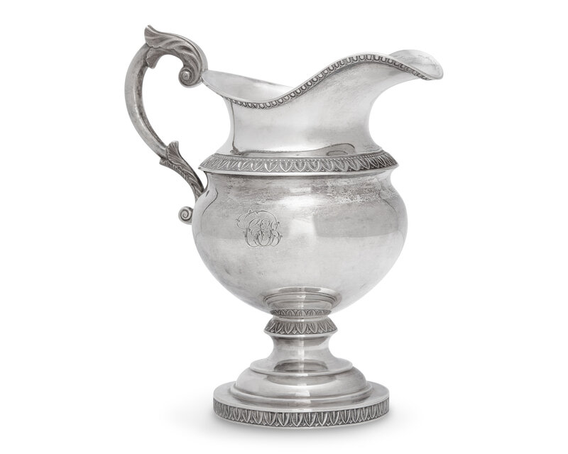 with scrolled handle, molded edges, engraved with monogram, "CEB," marked to underside.