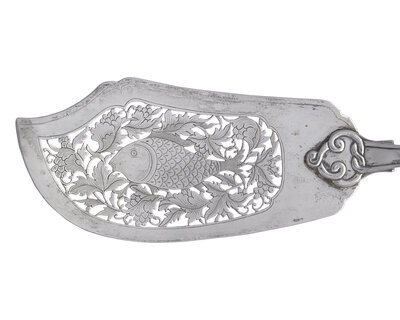 A Chinese Export Silver Punch Ladle and Fish Knife