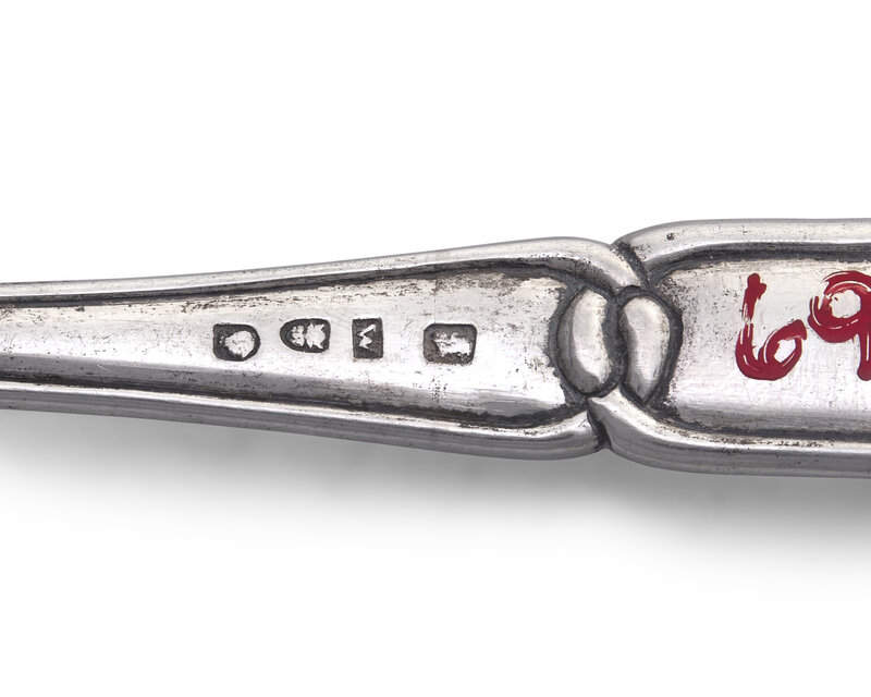 each handle end engraved with monogram, "WFCK," marked with pseudo English hallmarks, bearing red-painted accession number, "69.132."