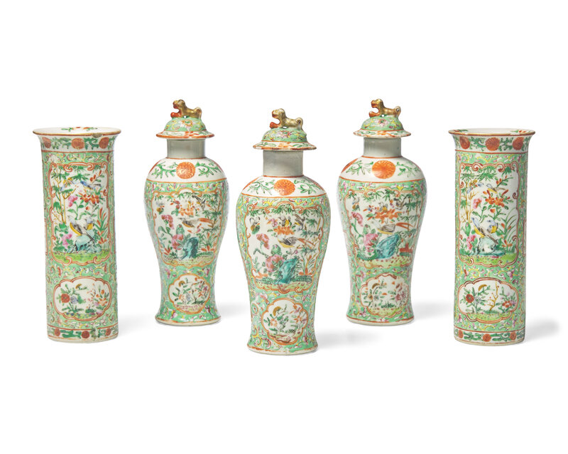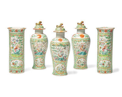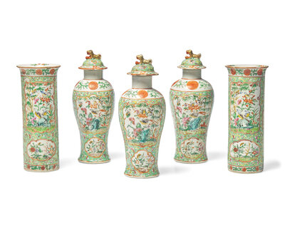 A Chinese Export Porcelain Famille Verte Five-Piece Garniture