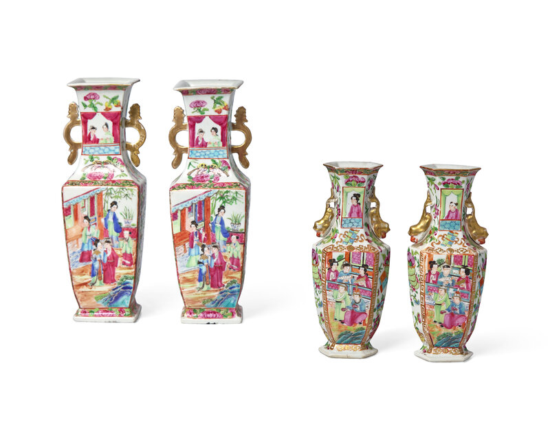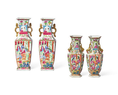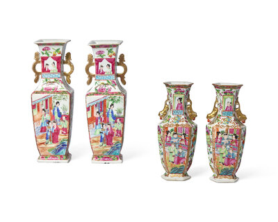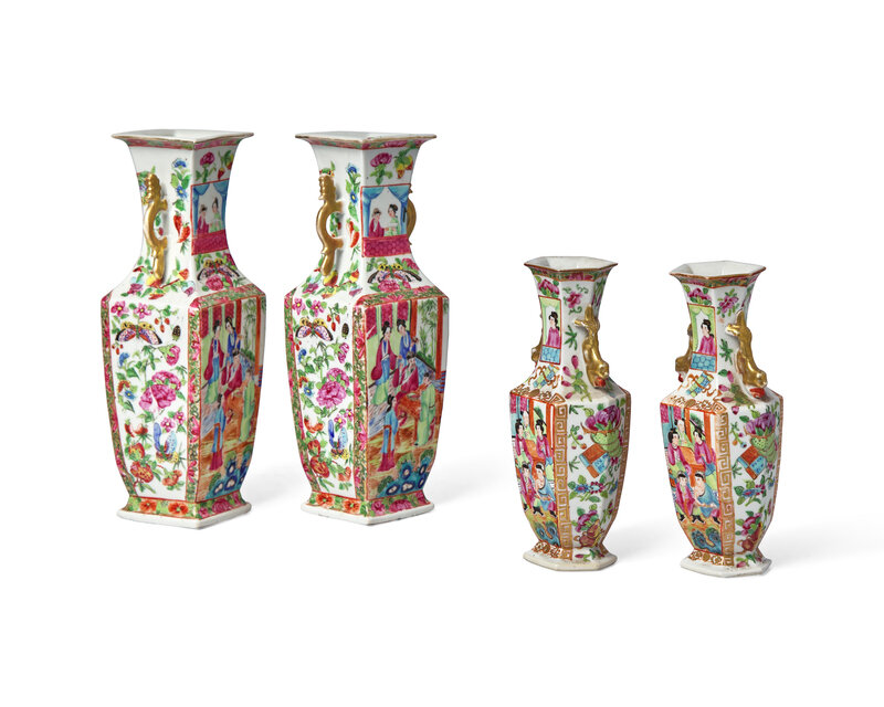 Four Chinese Export Porcelain Rose Medallion Vases