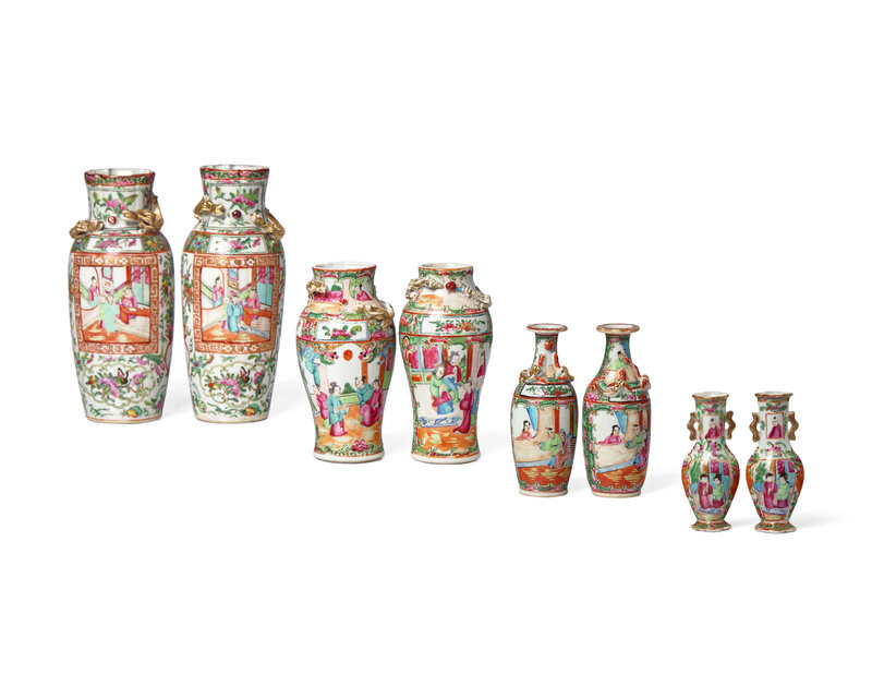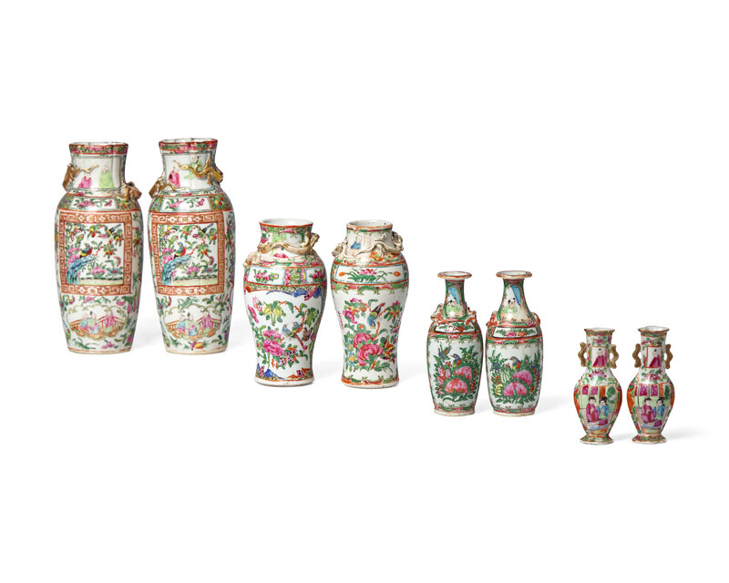 Eight Chinese Export Porcelain Rose Medallion Vases