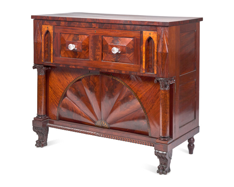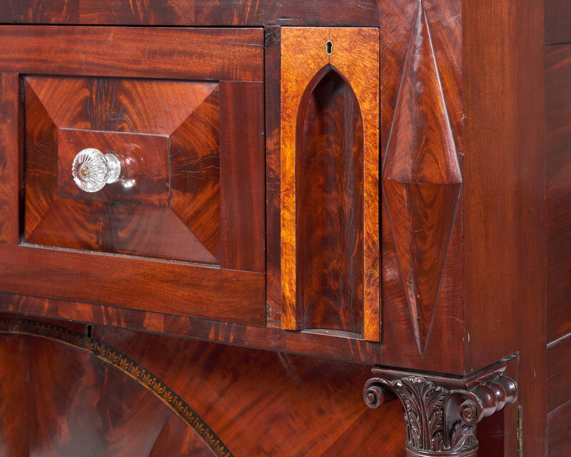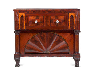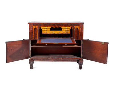 A Classical Carved, Inlaid and Veneered Mahogany Secretary Base