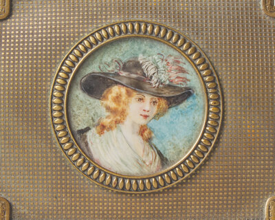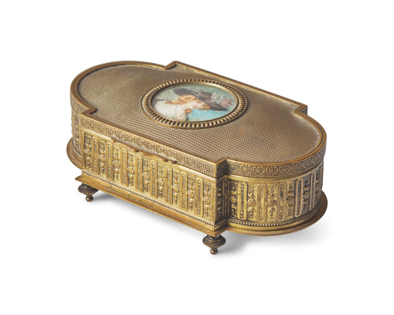 A French Gilt Bronze Jewelry Box Inset With Portrait Miniature