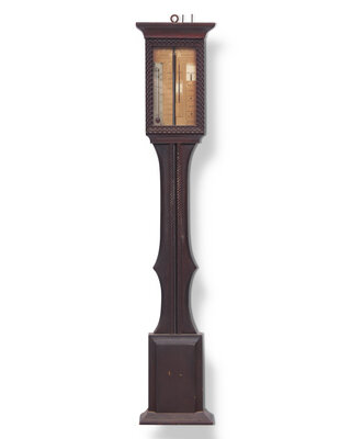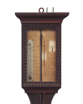 the face inscribed, "H.A. Clums/ Agricultural/ Lyman King,/ Adjustable/ Barometer/ Clifton Springs, NY/ Patented May 29th 1860."