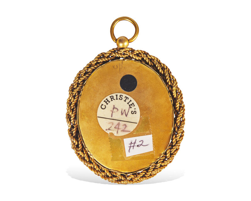 watercolor, housed in gilt metal pendant case.