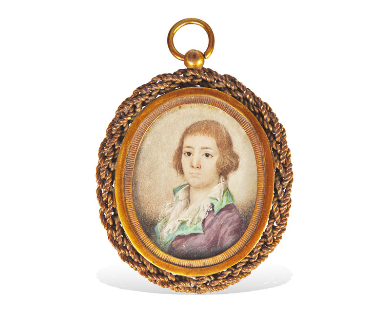 Spanish School 18th Century, A Portrait Miniature of a Young Boy with Green Collar