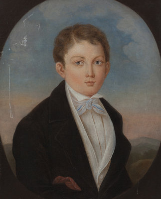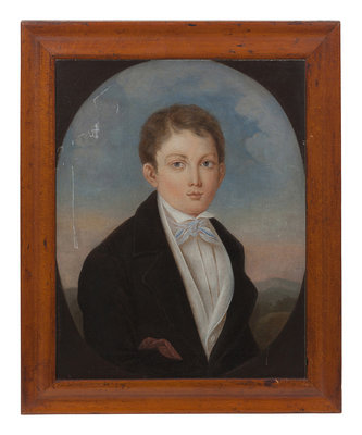 the portrait of boy bearing old jelly label verso, inscribed, "G. Gray/ Port. of Boy", oil on canvas, framed.