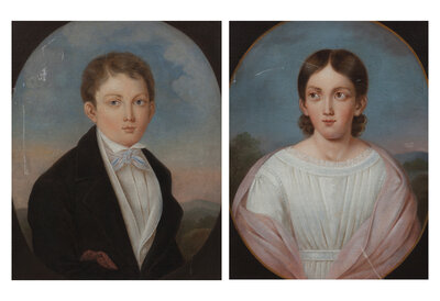 American School 19th Century, A Pair of Portraits: A Boy and Girl