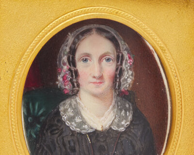 Attributed to Annie Dixon (English, 1817-1901), A Portrait Miniature of a Lady in Black Dress, Lace Collar, and Bonnet