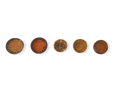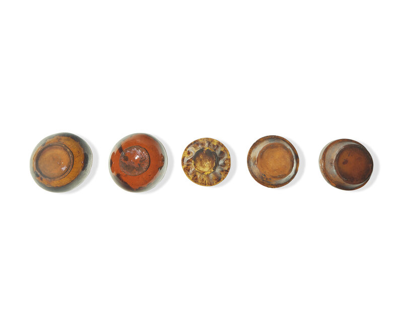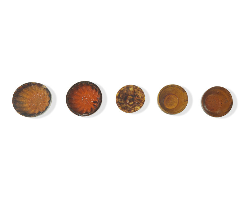 Three Glazed and Manganese Splashed Miniature Turk's Hat Redware Pudding Molds