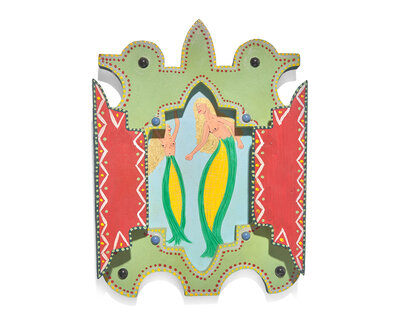 Canadian School 20th Century, A Carved and Painted Wall-Mounted Diorama of Corn Effigy Figures