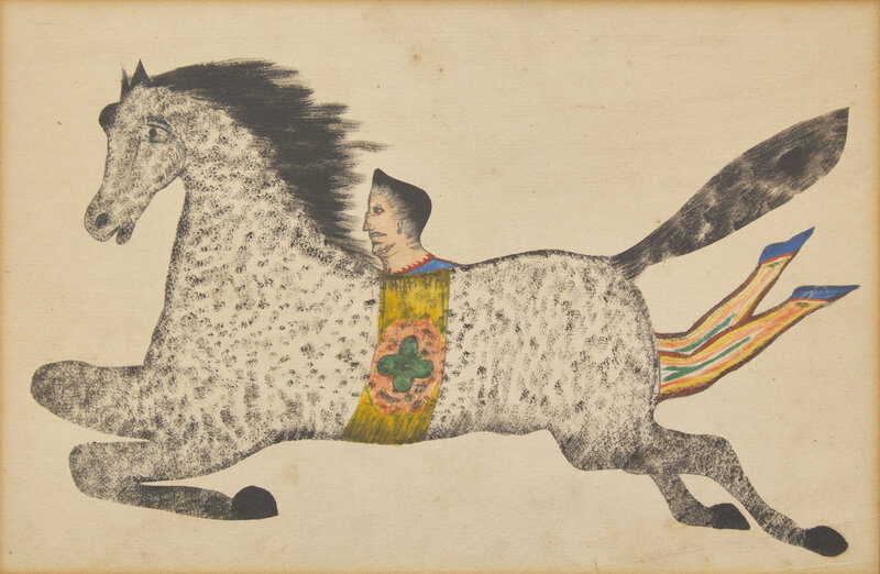 American School 19th Century, A Drawing of a Flying Horse and Acrobat