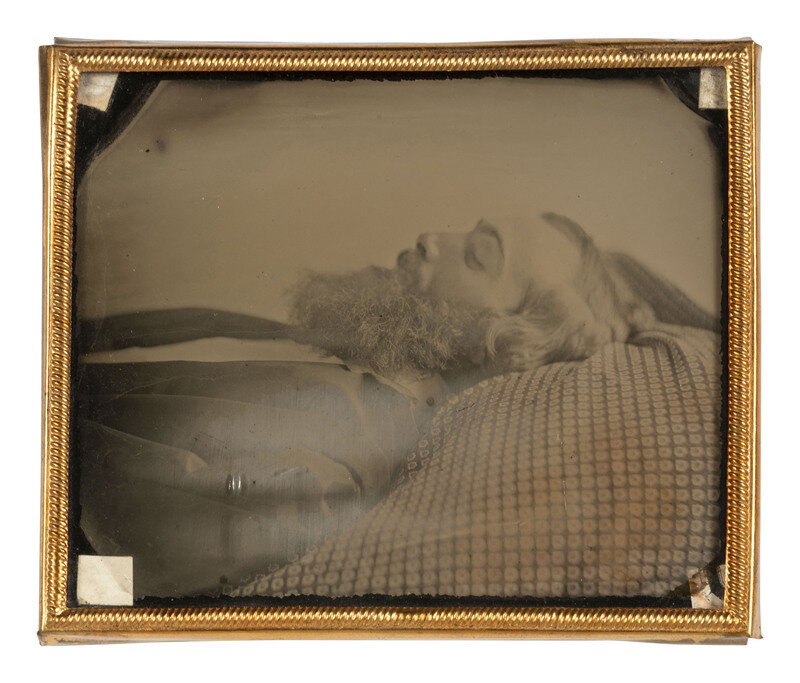 [EARLY PHOTOGRAPHY]. Sixth plate postmortem ambrotype of a bearded gentleman.