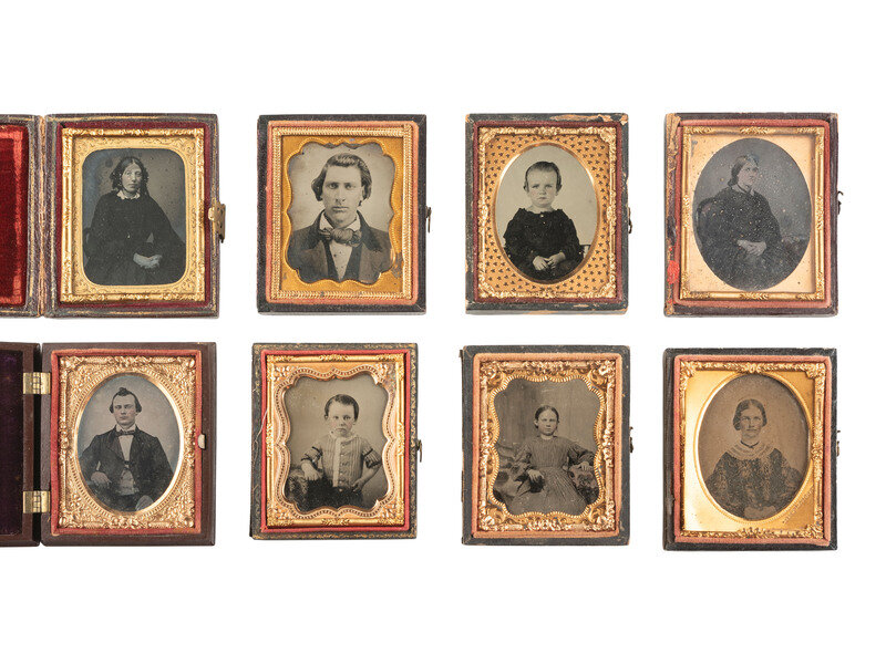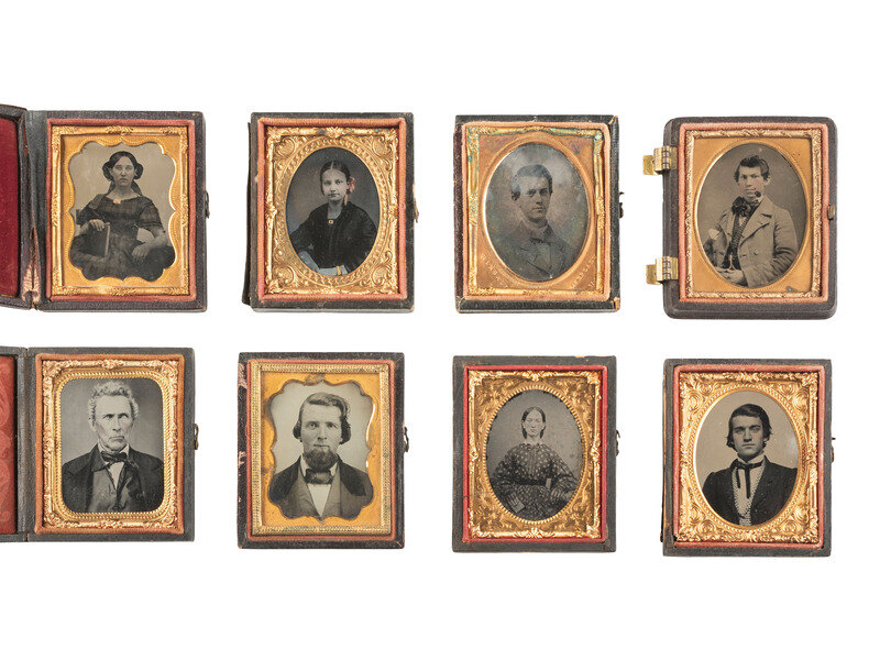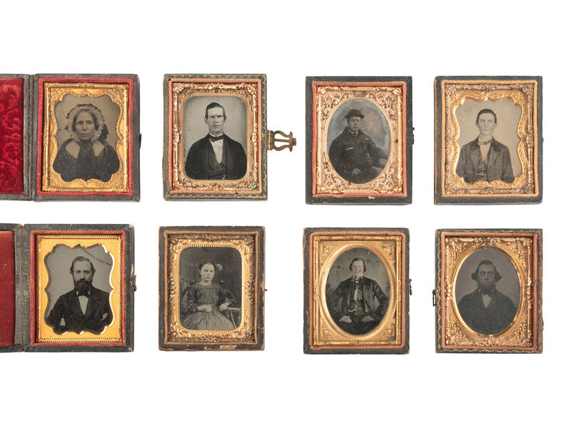[EARLY PHOTOGRAPHY]. 42 ninth plate ambrotypes and tintypes of men, women, & children.