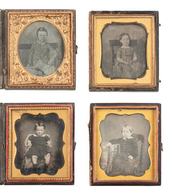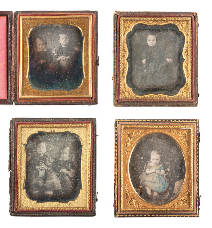 [EARLY PHOTOGRAPHY]. 21 sixth plate daguerreotypes of children, some in pairs.