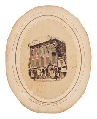 [EARLY PHOTOGRAPHY] Albumen photograph of "Ambrotypes & Photographs" studio, possibly in New Jersey.